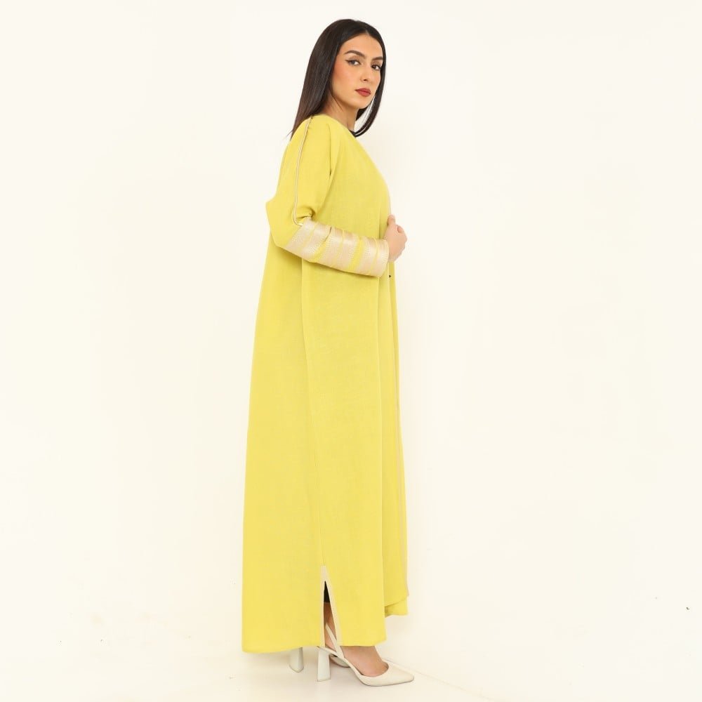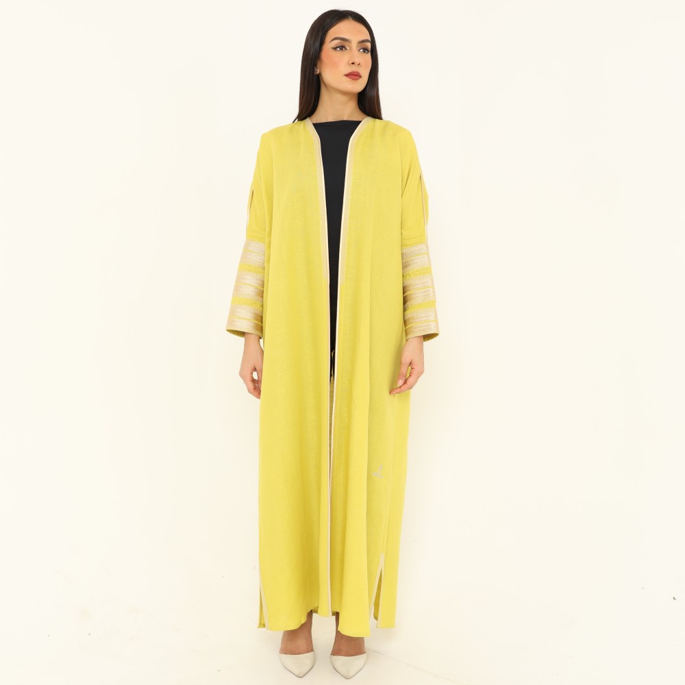 • التطريز: مزينة بتطريز فاخر على الأكمام والأمام بخيوط حرير متقنة، تضيف لمسة تميز لا مثيل لها.